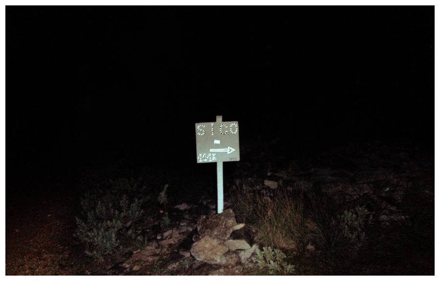Entretanto, um participante, sozinho, que ainda não tinha visto, cheguei-me a ele. Estava com um problema numa virilha mas, conseguia andar, fiquei um bocado junto a ele, não precisava de mim, segui. A cerca de um quilómetro do próximo ponto de controle, de acordo com os meus cálculos mentais, as fitas desapareceram de novo. Na estrada, não haviam cruzamentos e arrisquei seguir em frente devagar, era uma descida, longa. Aparecem então de novo as fitas, bem como alguns marcadores reflectores, que me levaram ao ponto de controle.