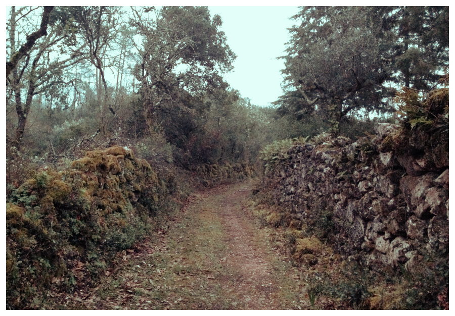 Primeiro tentei a técnica de “uma passada de olhos abertos, uma de olhos fechados” já que estava num estradão largo e sem grandes incidentes mas, não deu mesmo. Estando tudo molhado da chuva que continuava a cair, sobrou-me encostar-me a um tronco praticamente na horizontal, em pé, com os olhos fechados durantes uns momentos. Não sei se foram 5 segundos, se foram 5 minutos mas, achei que já era tempo de seguir. Veio então o trilho do Vale de Poios, lindíssimo, quase extra-terrestre, e a paragem no abastecimento “No limits”, onde comi duas canjas, uma delas com ovo e cebola.