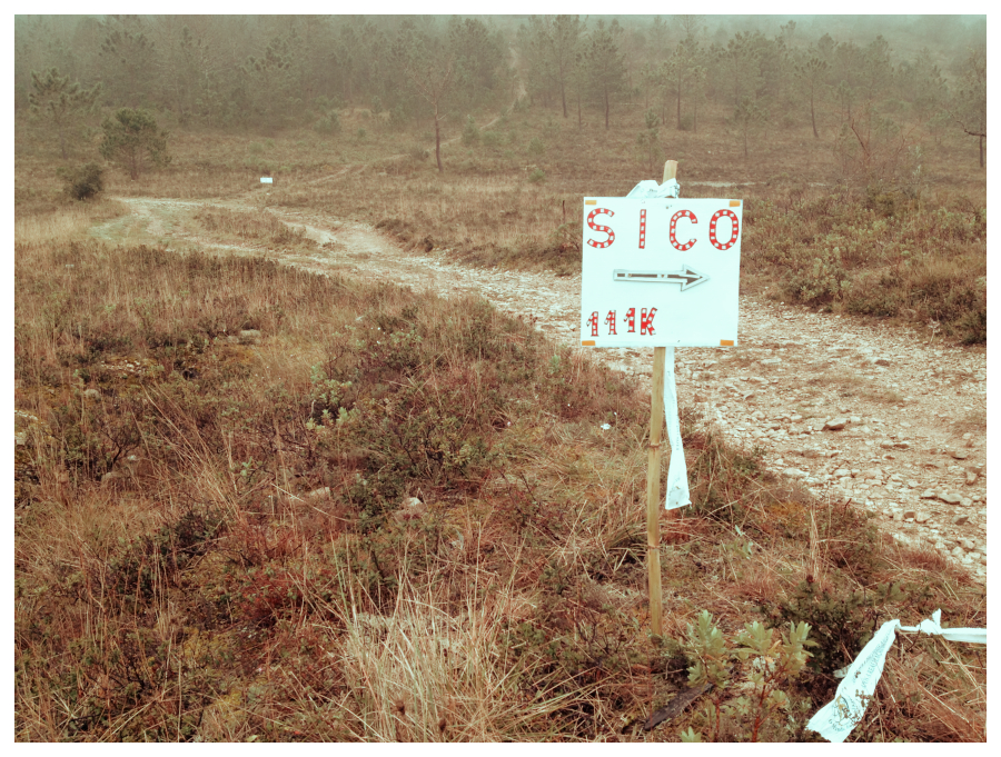 Volto mais atrás e, pela lei das probabilidades, encontro do outro lado do estradão um bocado de plástico praticamente igual. Não me sobra senão voltar ao último cruzamento, onde estava a tal estrutura e aí, analisar de novo a situação, sendo que deveria ter virado à esquerda, onde as fitas seguiam lá mais à frente. Um misto de inexperiência e falta de marcações fez-me perder aí uns bons quinze minutos.