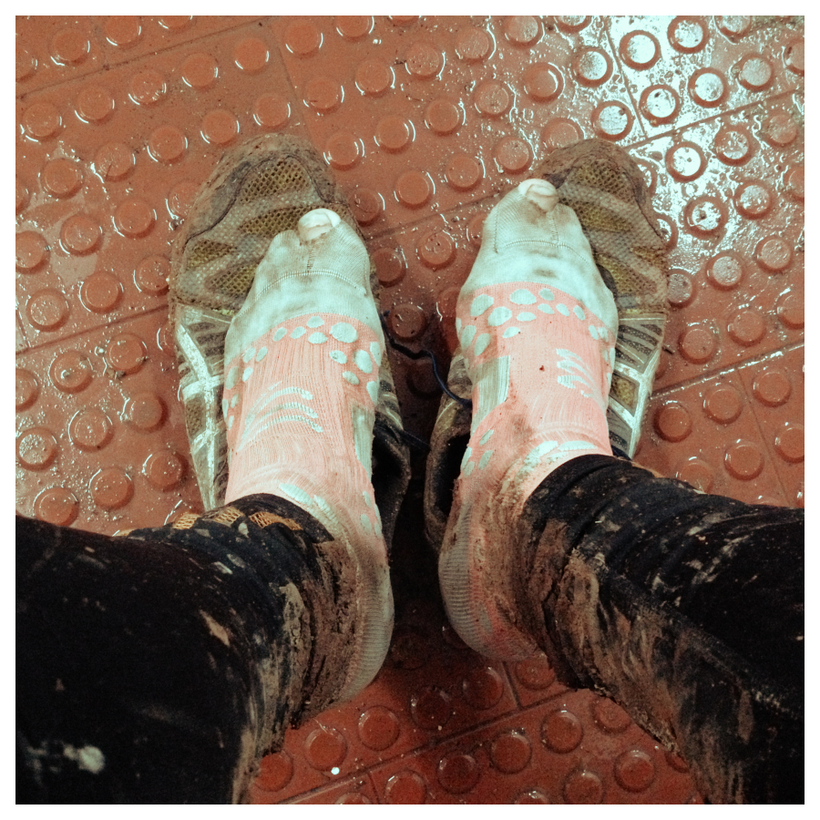A ficar com frio (estava com a mesma roupa há 21 horas e qualquer coisa), fui directamente para debaixo do chuveiro, não sem antes tirar a roupa que tinha, é claro. As meias e as sapatilhas não sobreviveram à provação, e ambos se rasgaram. A água, quente o suficiente para me aquecer, lá tirou a lama e o suor que me acompanhavam há horas. Vesti algo confortável, fui à zona da chegada ver quem aparecia mais e recolhi ao meu casulo, de manhã a festa continuava com a prova dos 65km, 25km e caminhada.