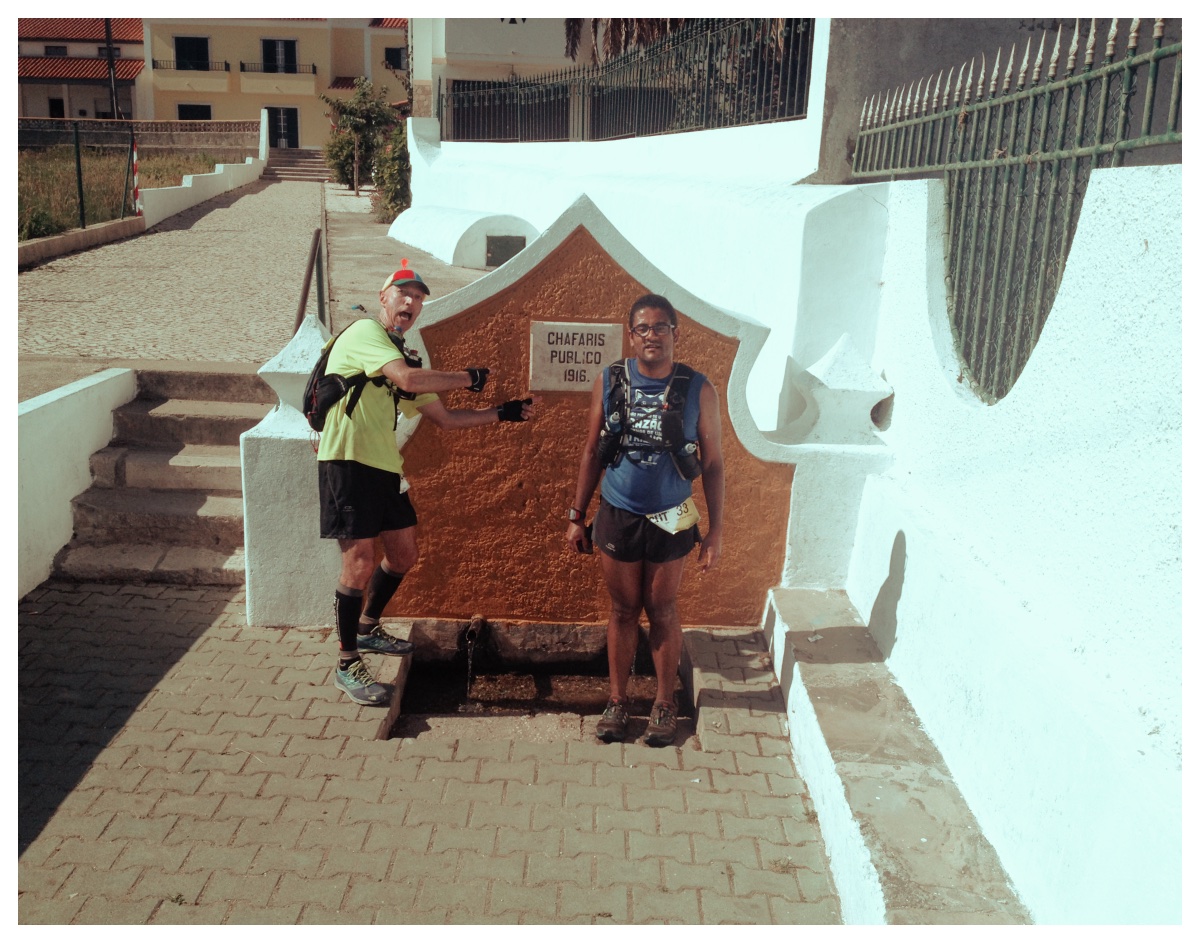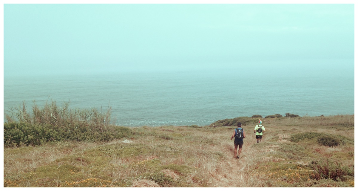 Passada a duna, vêm as arribas. Mais uma vez, entre nevoeiro e sol, descíamos ao nível do mar, subíamos ao topo do monte, e assim por diante, dez quilómetros disso, mais coisa, menos coisa. Pelo meio, dois pontos de abastecimento de água extras, onde voluntários da organização tinham água para os participantes e, numa das zonas, ajudavam a descer quem precisasse. Nós, lá íamos gerindo o esforço como podíamos. Outro de nós “morreu” no quilómetro trinta, a cabeça é tramada. Pessoalmente, comecei a ficar irritado e impaciente. Não gosto muito de arribas, já sabia que a prova ia ter arribas, estava cansado, sem força, com um dedo a doer por causa da areia e do “bater à frente”, vá lá que não sou queixinhas. Lá fomos andando, sempre a puxar uns pelos outros. O Paulo, mais eram as vezes que esperava por mim e pelo Joel do que não, eu e o Joel, continuávamos a alternar entre o meio e o fim, como podíamos. Entretanto, nesta altura o Joel José…