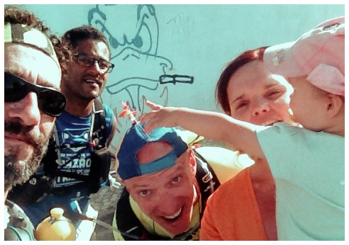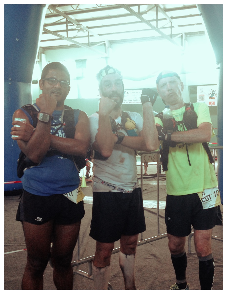 Na chegada, pouca gente à espera. Um amigo tirava-nos fotografias, e a Elsa e a Sara, claro, para além da organização e já alguns dos voluntários dos abastecimentos que tínhamos largado há horas. Fizémos menos de dez horas de prova, pouco menos. Se poderiamos ter feito menos? Sim, mas também poderiamos ter feito mais, corremos quando pudemos, andámos quando não conseguimos dar mais. Chegámos ao fim ilesos, sãos e salvos, assaduras e queimaduras solares (mesmo protegidos) não contam como lesão. Entretanto, nesta altura o Joel José…
