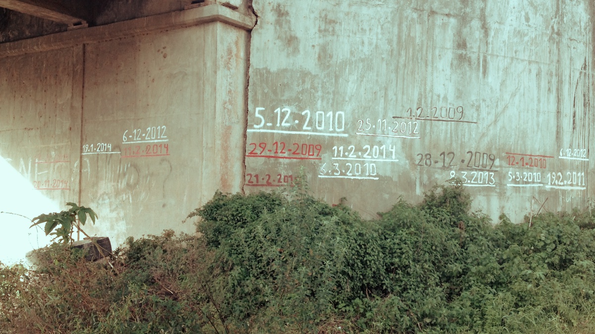 Marcação de nível da água no Rio Lizandro na aldeira do Carvalhal.