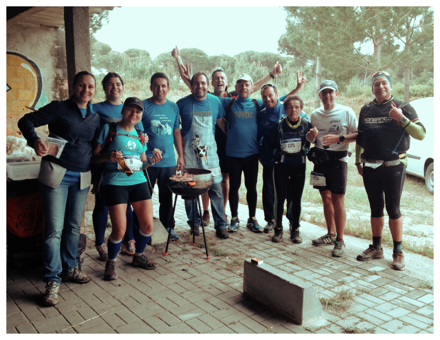Arranquei para o próximo abastecimento, onde o grelhador das febras trabalhava vivamente. Cerveja branca e preta, vinho branco e tinto, coca-cola, guaraná, água, isotónico, febras, pão, batatas, tomate, laranja, sal, as iguarias habituais que a organização de “O Mundo da Corrida” costuma apresentar.