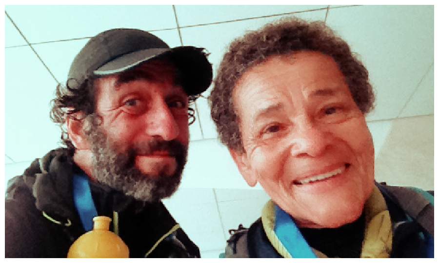 Sim a super-Mãe Elsa, a minha companheira e Mãe da nossa Sara, a quem a medalha e a travessia foram dedicadas, devido a todo o esforço e empenho que põe na nossa família e lar, e que permite que eu possa estar 11h49 a ir de Sesimbra ao Meco e voltar, com uma história pelo meio para contar.