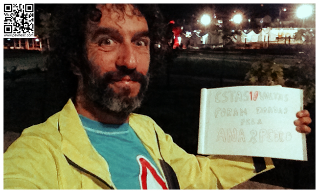 E continuava, cada passo, cada vómito. Na sua última volta, a Ivete e o Pedro lá me rebocam até à chegada, a bom ritmo. As pernas, as minhas, estavam frescas mas o estômago que coisa. Na meta, umas fotos, e lá continuei com as voltas, a ver a vida mal parada. Cada uma das últimas quatro voltas já estavam a demorar quase meia hora. Não tinha rebuçados, estava a dar-me sono e não conseguia beber café, nem água estava a conseguir beber. O anti-ácido que tinha estava no carro, se fosse ao carro já não voltava mas, lá consegui terminar estas voltas inteiro.